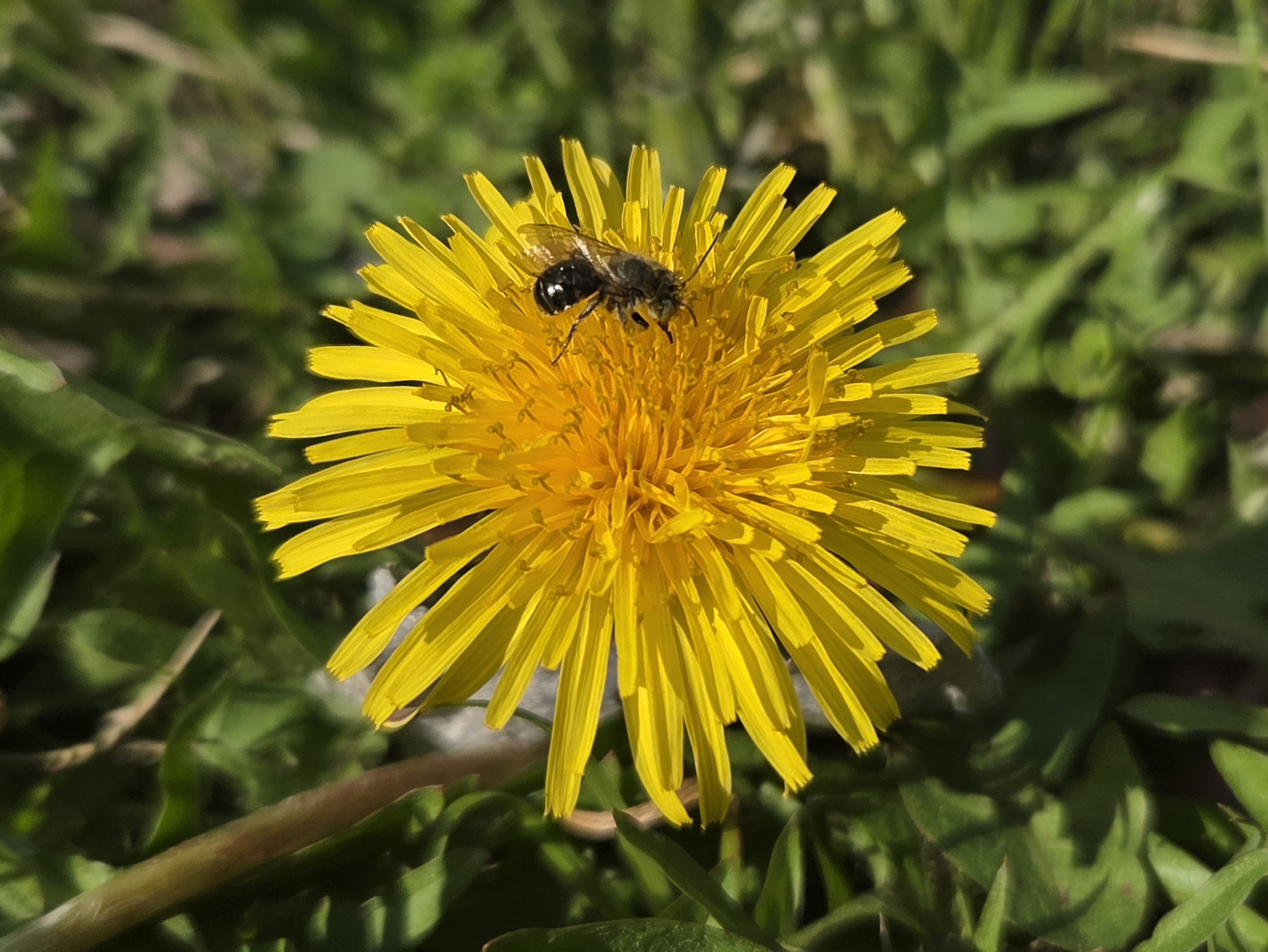 タンポポの花に蜜泥棒が来ていました。