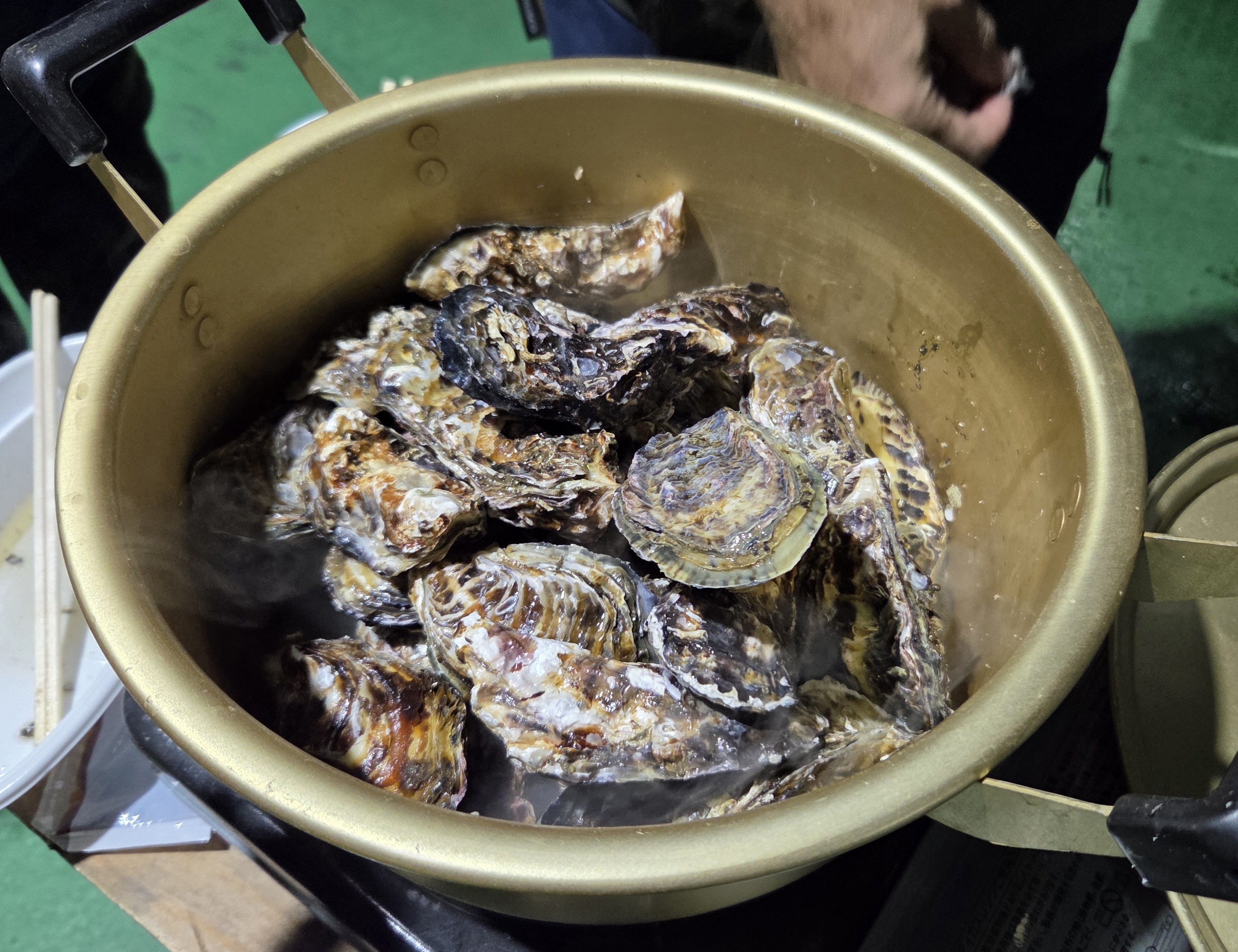 年明けの仕事終わりには、社内で従業員たちと一緒に牡蠣をいただきました。